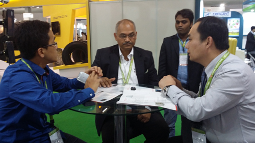 恒聯(lián)攪拌車總經(jīng)理在印度寶馬展上向展商咨詢