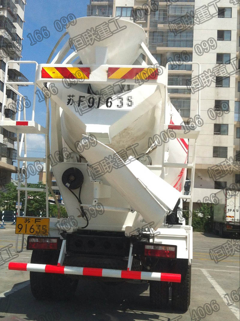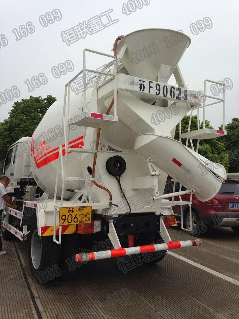 江蘇南通毗鄰上海大都市各種車輛掛牌落戶一直比較嚴格,各種標準一直走在前端,國家的各個掛牌指標也都能及時落實到位。我公司的小型攪拌車嚴格按照國家公告標準設計生產,在全國各地都能上牌落戶,合作生產水泥攪拌車的底盤廠家有東風、福田、唐駿、重汽、三環(huán)、大運等知名廠家。排放標準完全達標,燃油公告、環(huán)保公告等水泥攪拌車公告一律齊全,小型攪拌車規(guī)格有2立方——8立方等單橋小型攪拌車,適合限寬限高的路況進行混凝土運輸工作,下圖為江蘇南通客戶掛好牌照的小型水泥攪拌車: