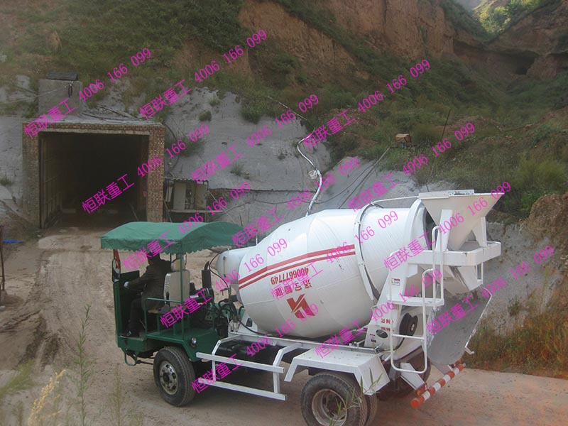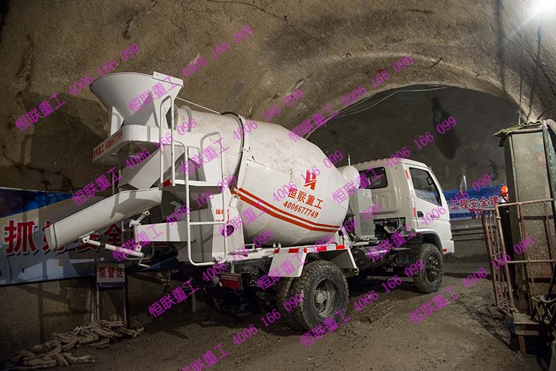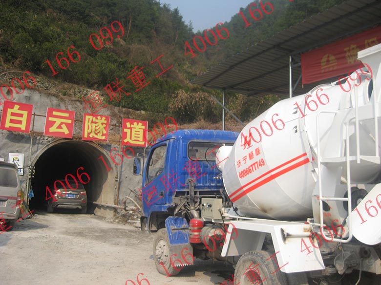 小型攪拌車在小型隧道進(jìn)行二襯施工